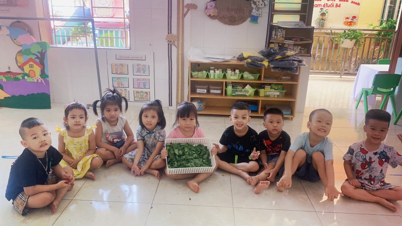 Hoạt động trải nghiệm được bắt đầu khi các bé bắt tay vào công việc của mình, cùng thảo luận quan sát, trò chuyện về rau. Dưới sự gợi ý và hướng dẫn của các cô giáo, các bạn nhỏ lớp B2 đã hoàn thành nhiệm vụ của mình.